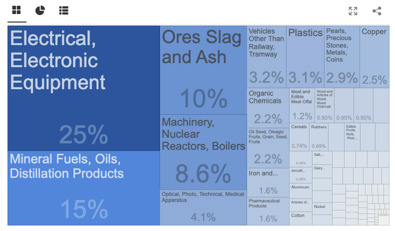 Давайте для начала рассмотрим структуру импорта Китая. Данные будут за 2021, так как детальных данных за 2022 еще не было (и не факт, что они будут):